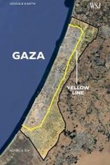 I alluded previously to the idea that has been floated by the US, and seems to be garnering additional interest, that Gaza be divided. Hamas, rather than being disarmed, would be restricted to the west of the yellow line that currently divides the Gaza Strip. In the section that Israel controls to the east (roughly 53%), reconstruction would begin with the involvement of key Arab nations. The civilians of Gaza would move into that area, where there would be opportunities for employment with the reconstruction, and in due course permanent housing.